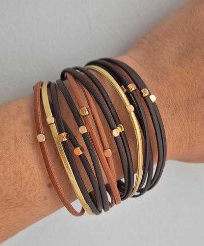 Black, gold & tan wrap bracelet